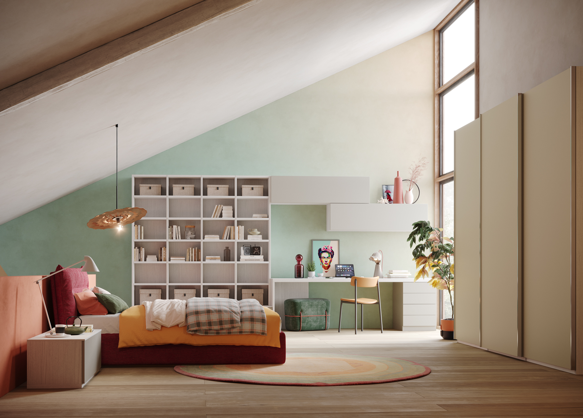 Dalla gestione dell'inclinazione del tetto alla creazione di zone funzionali e allo sfruttamento intelligente delle aree basse, le soluzioni Giessegi per le camerette in mansarda, con la loro modularità, versatilità e la qualità Made in Italy, offrono la risposta ad ogni singola sfida.